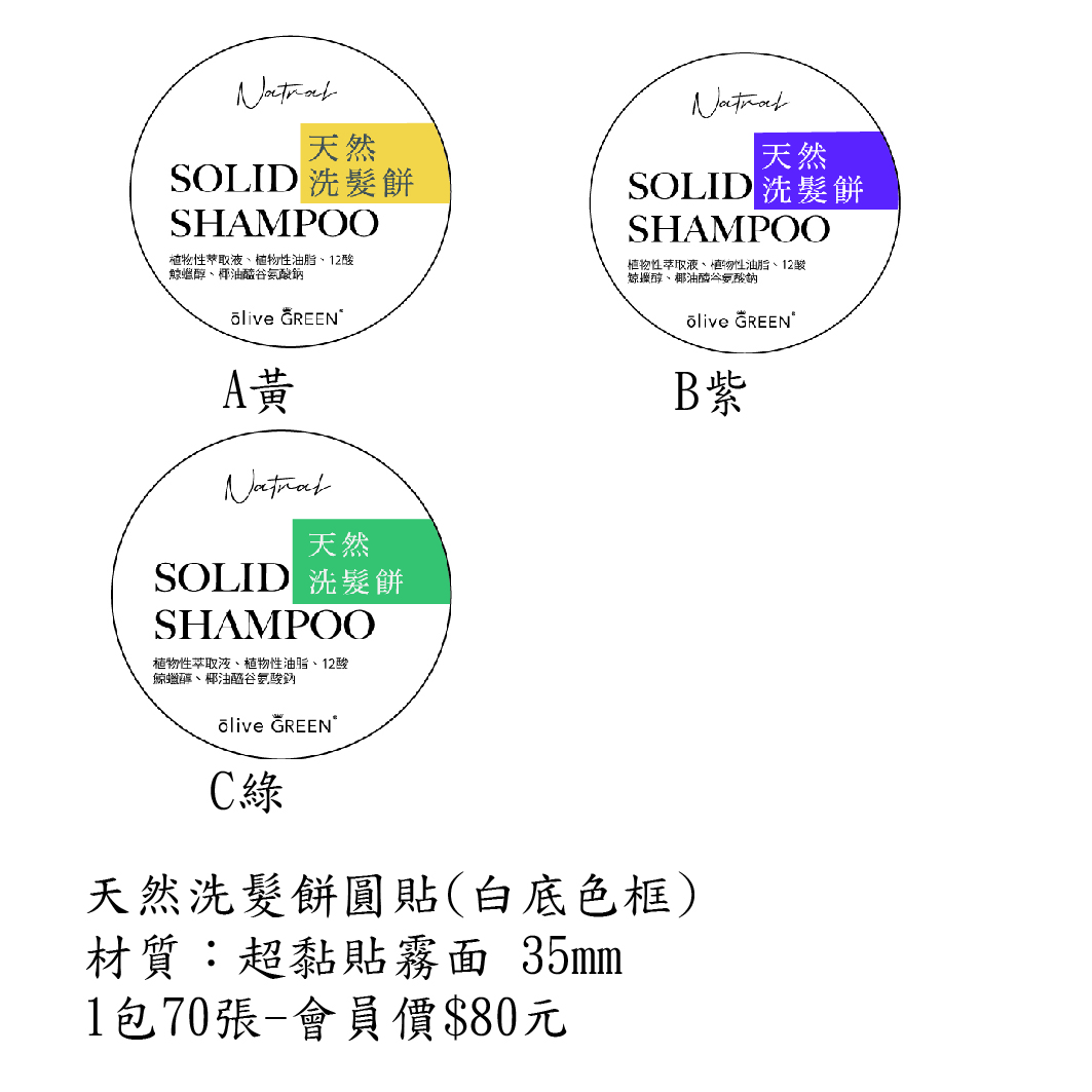 天然洗髮餅圓貼(白底色框) 35mm A款
