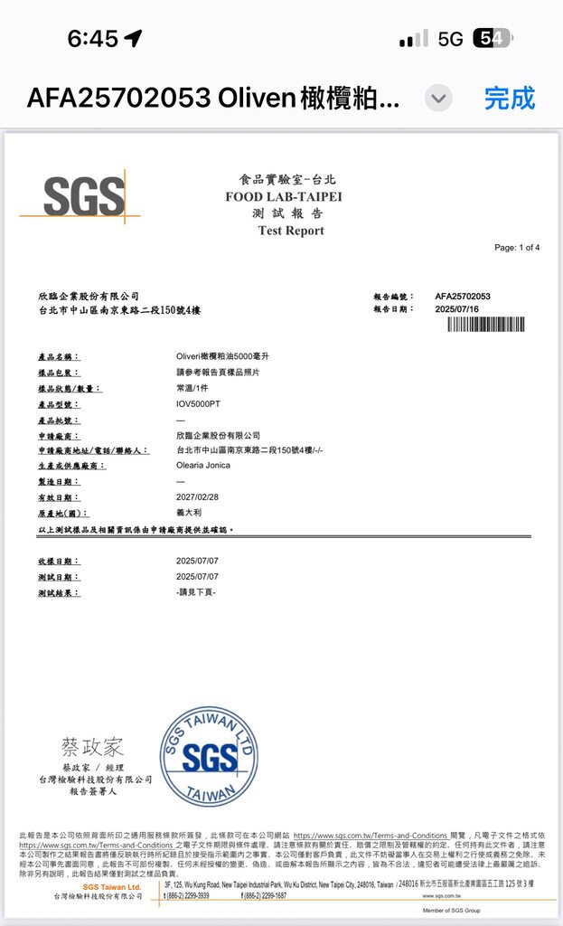#奧立維亞Oliveri(食品級)(5)公升(鐵桶包裝)